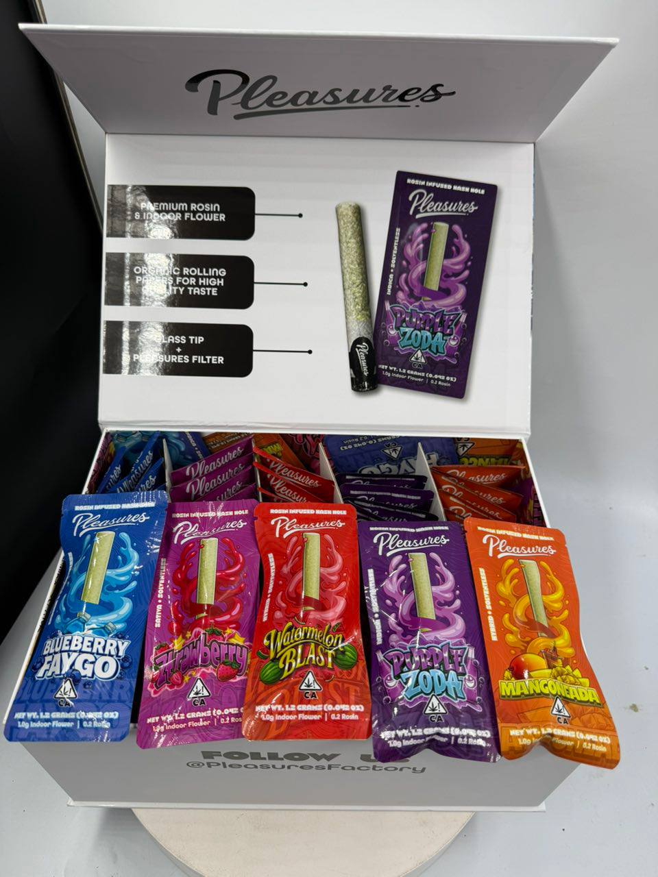 Beyond its functional qualities, the Pleasure Rosin Infused Hash Hole also offers a visually striking presentation. The signature “hole” that forms during the burn is both unique and aesthetically pleasing. This feature has become a hallmark of high-quality infused joints.