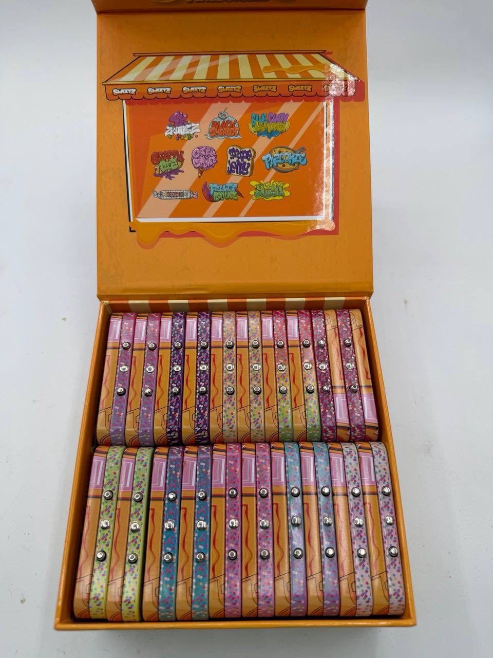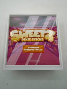 The packaging of Sweetz Pixie Sticks Premium Mini Prerolls reflects a modern and visually appealing design. Bright colors and clean lines create a distinctive look. As a result, the product stands out on display.
